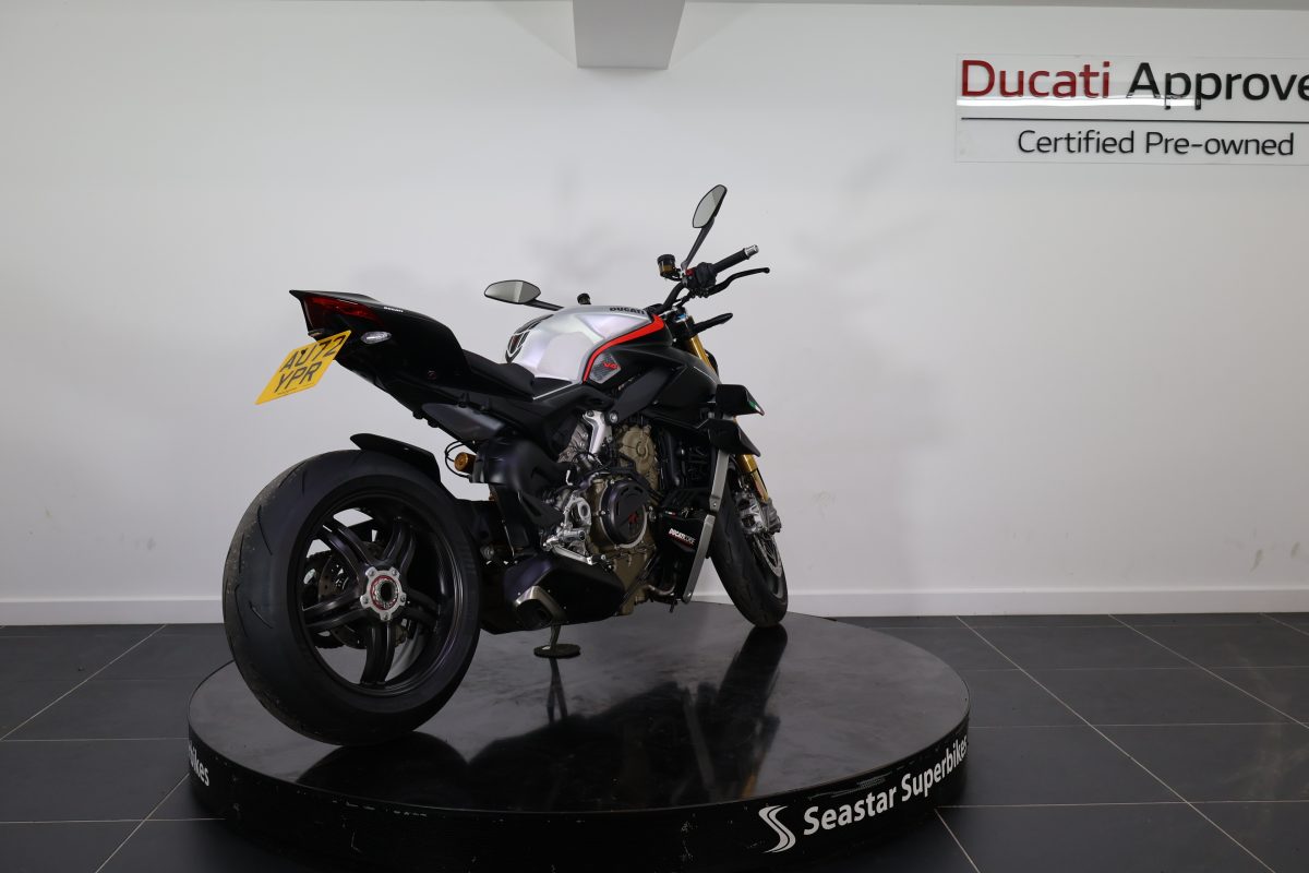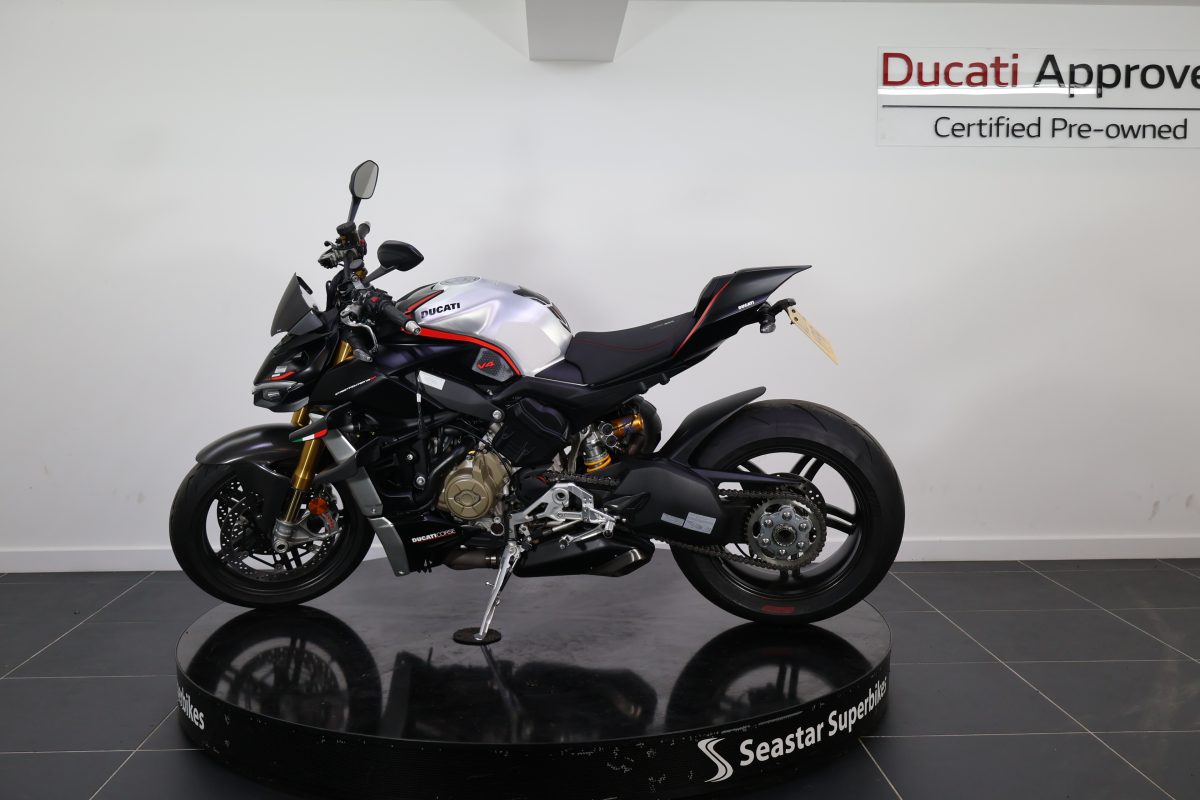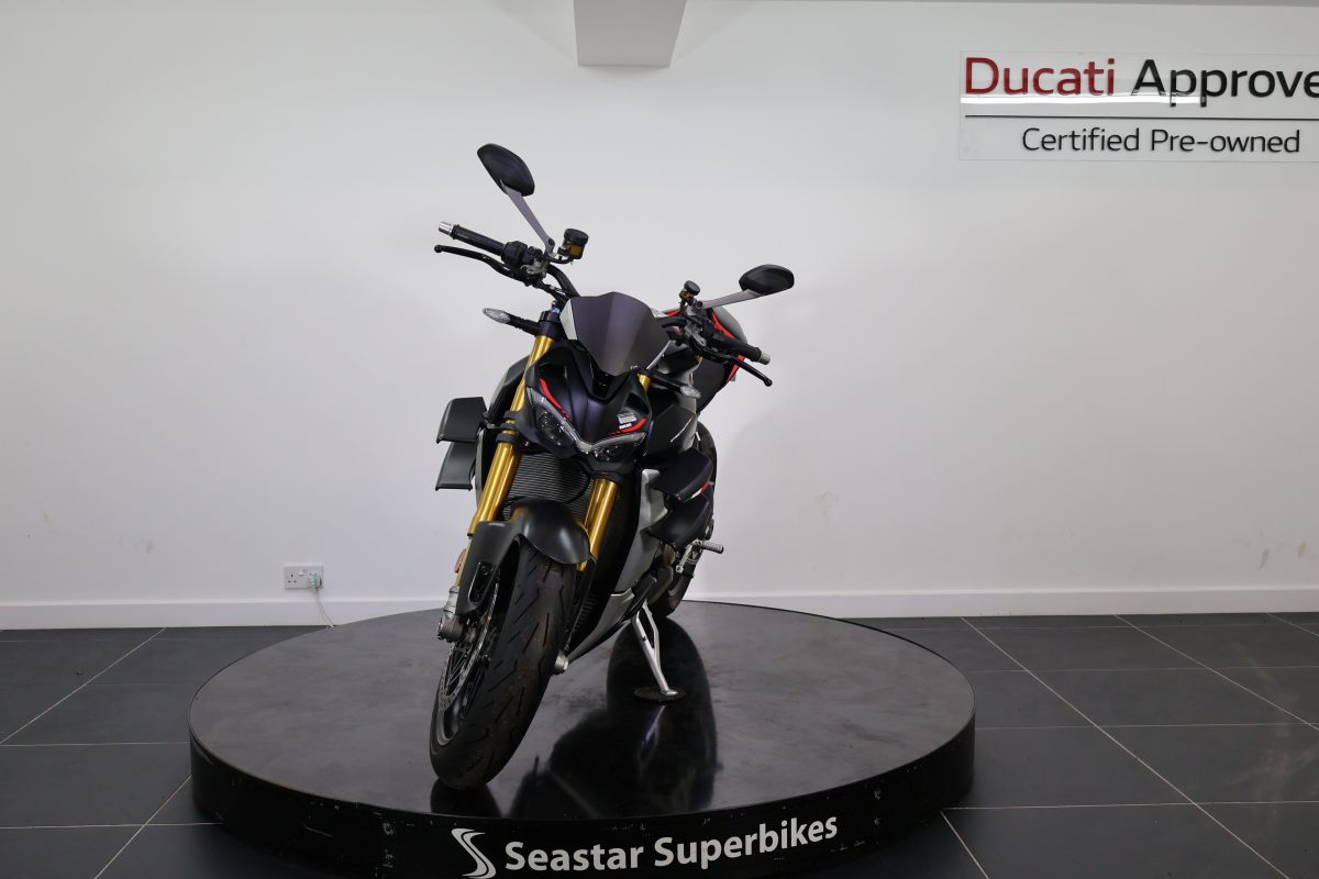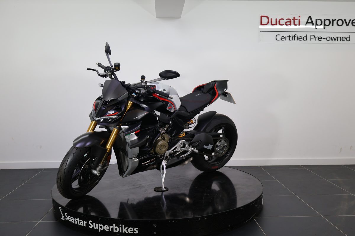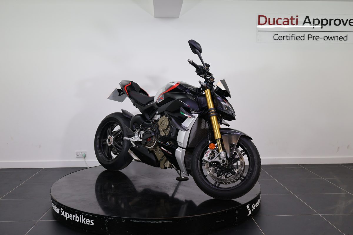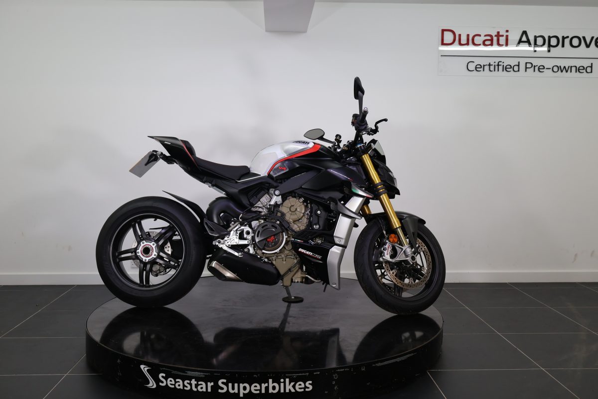 Here at Seastar we are pleased to offer this stunning 2022 Streetfighter V4 SP. The SP as standard comes with carbon wheels, carbon wings, and the stunning stealth livery. Not only having gorgeous looks, the performance of this bike is incredible, which would be expected from 208bhp!