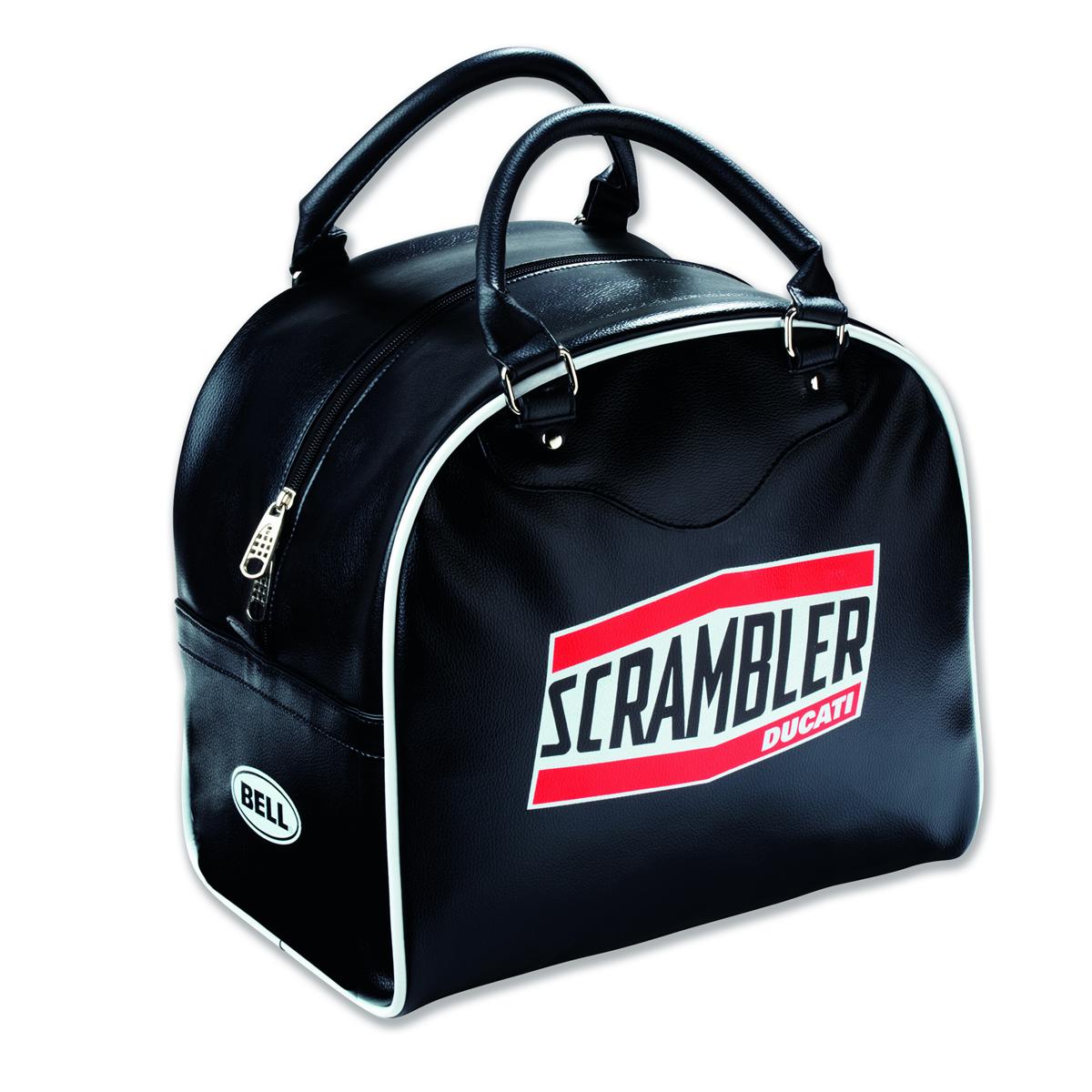 The Short Track helmet bag, with faux leather exterior and a soft inner lining, is the perfect way to protect your Short Track helmet and show your affinity to the new Ducati Scrambler world. 33x34x22 cm