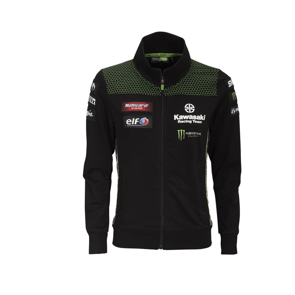 For ladies who like to keep it warm and stylish, this zip-up sweatshirt is just the thing. It’s all about the finish, really: gold piping at the sides and shoulders, woven patches with sponsor logos and mesh inserts at the sides, nicely contrasting with the soft blend of cotton and polyester.