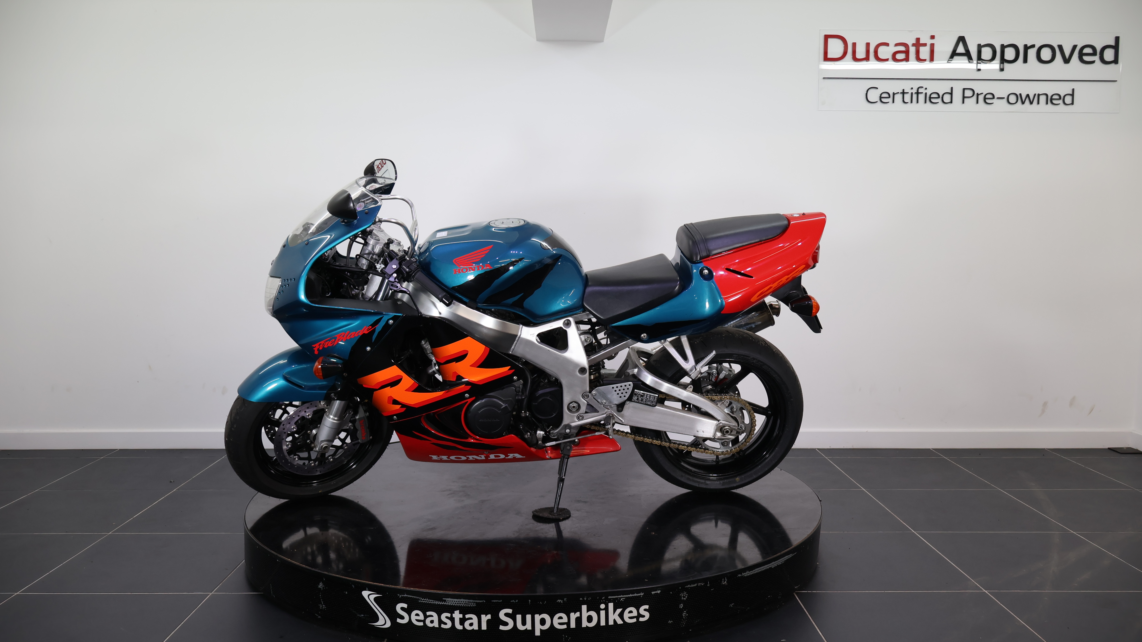 Here at Seastar we are pleased to offer this gorgeous 1999 CBR900RR. This bike is truly a statement of Honda’s racing heritage, with around 130bhp, and capable of 160mph, making this bike one of the greatest of its era. This particular bike is carrying some history of its own, being previously owned by Top Gear presenter, James May, in which ‘Captain Slow’ got a speeding ticket pretty much immediately after his collection of this machine!